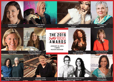 Named one of Billboard's "7 must-see events at NAMM," the fourth annual She Rocks Awards offer performances, food and beverages, giveaways, a silent auction, networking opportunities, and more. The event brings together industry professionals, music icons, artists, fans, and media to celebrate women in music. A portion of the proceeds of the event will go to benefit the Girls Rock Camp Alliance and the NAMM Foundation.